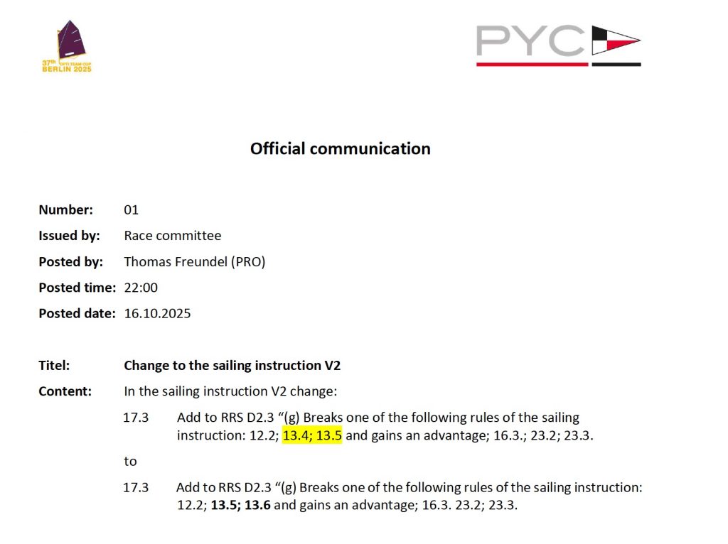Sailing Instruction Version 4 (V4) as of 15 October 2025. This Version replaces V1 as of 8 October 2025.