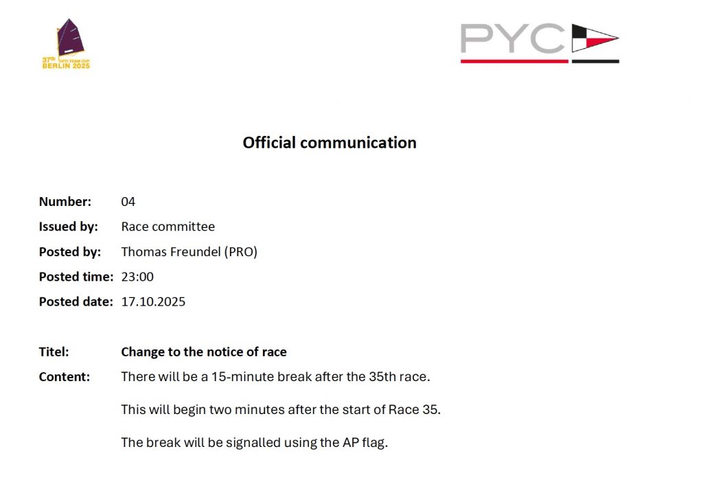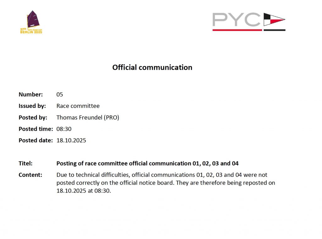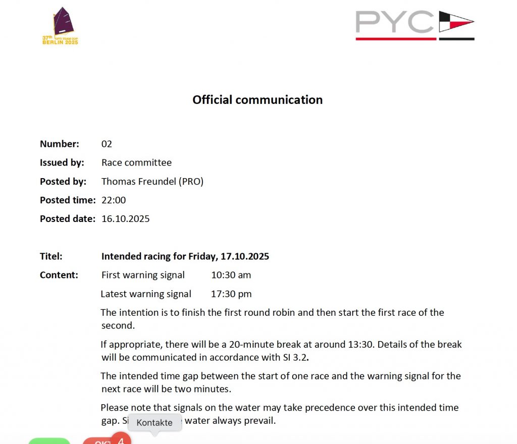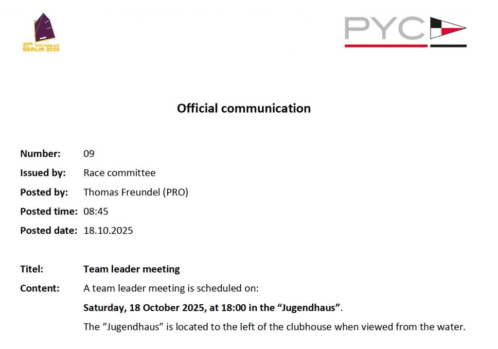 Schedule for the 2025 Optimist Team Cup as pdf-File as of 15 October 2025.
