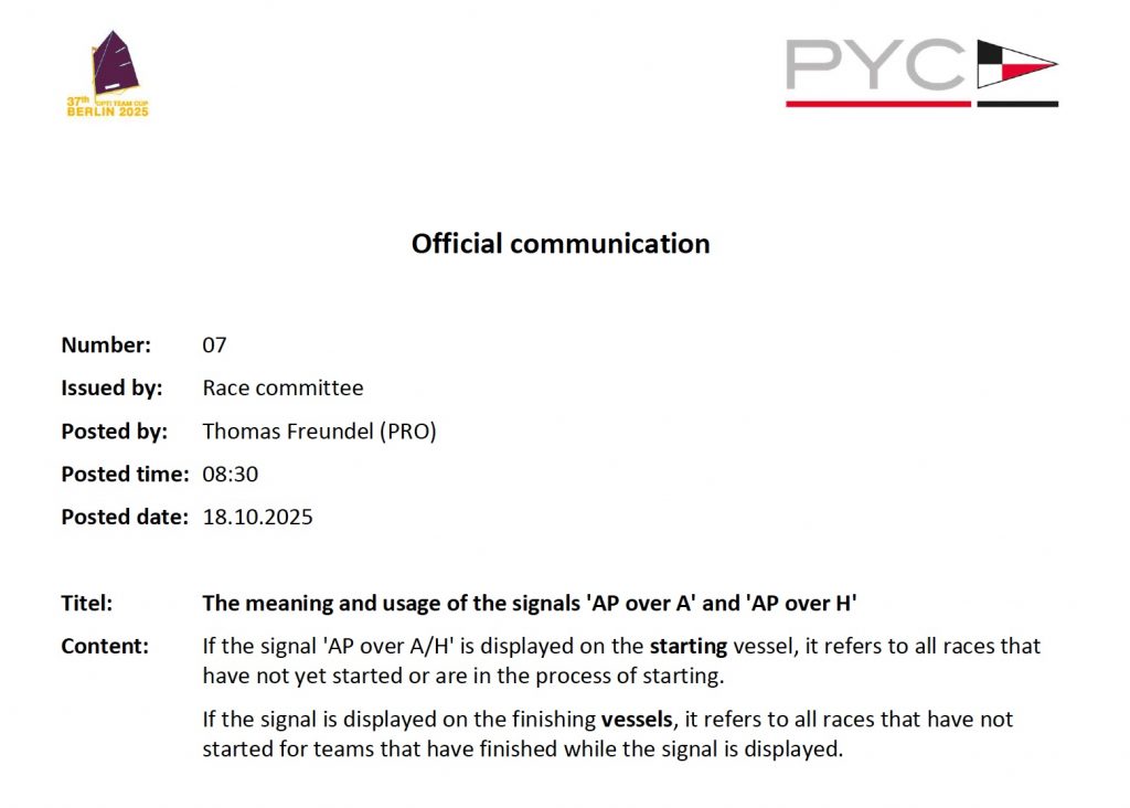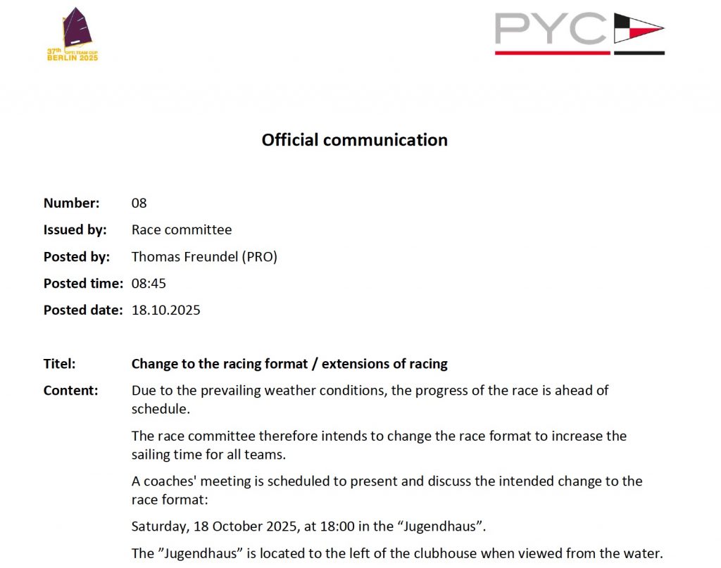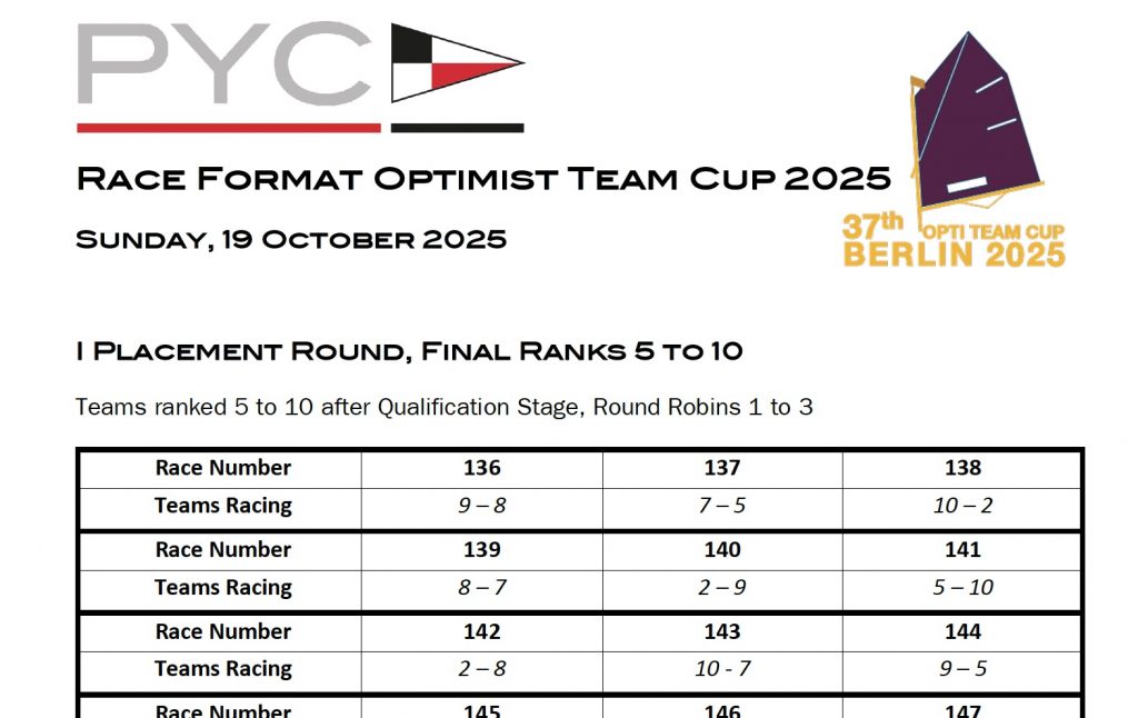Race Format for the Optimst Team Cup 2025 as pdf-files as of 15 October 2025
